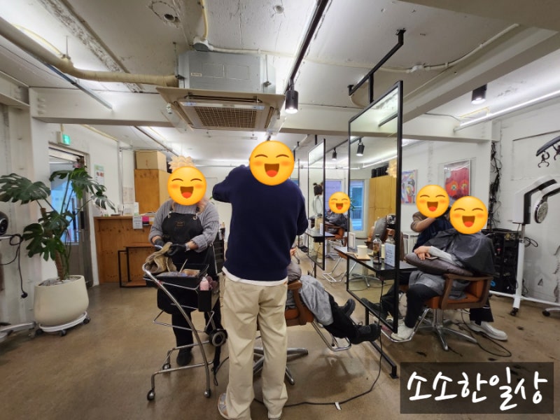 대기실이 작고 아기자기, 미용실인데 커피숍? ? 각종 차, 커피, 쥬스가 갈증을 풀어주고, 따뜻한 차 한 잔이 추위를 녹여줍니다. 차, 쥬스, 커피도 아주 시원해서 여름 더위를 날릴 수 있다고 하네요^^ 더위 대기공간이 분리되어 있고 한쪽은 따스하고 포근하고 편안하고, 창가쪽은 독특한 벽면 디자인과 화려하고 아름다운 조명, 스타일리시한 포토액자, 스타일리시한 테이블과 의자들 너무 좋아요 좋아요 아들이 염색할 수 있을 정도인데 제가 더 좋아해요.멋진 인테리어