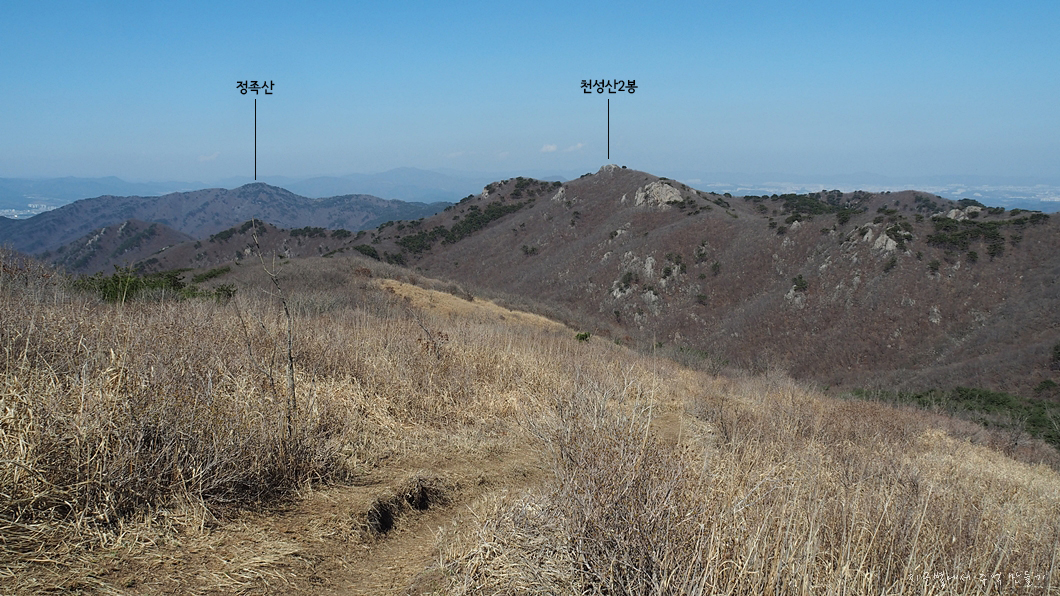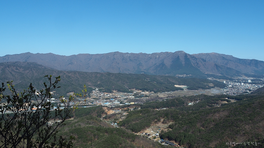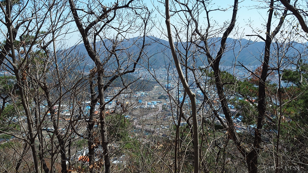 왼편 숲 너머로 양산 서창이 보이지만 능선 끝까지 조망이 열리지 않는다.