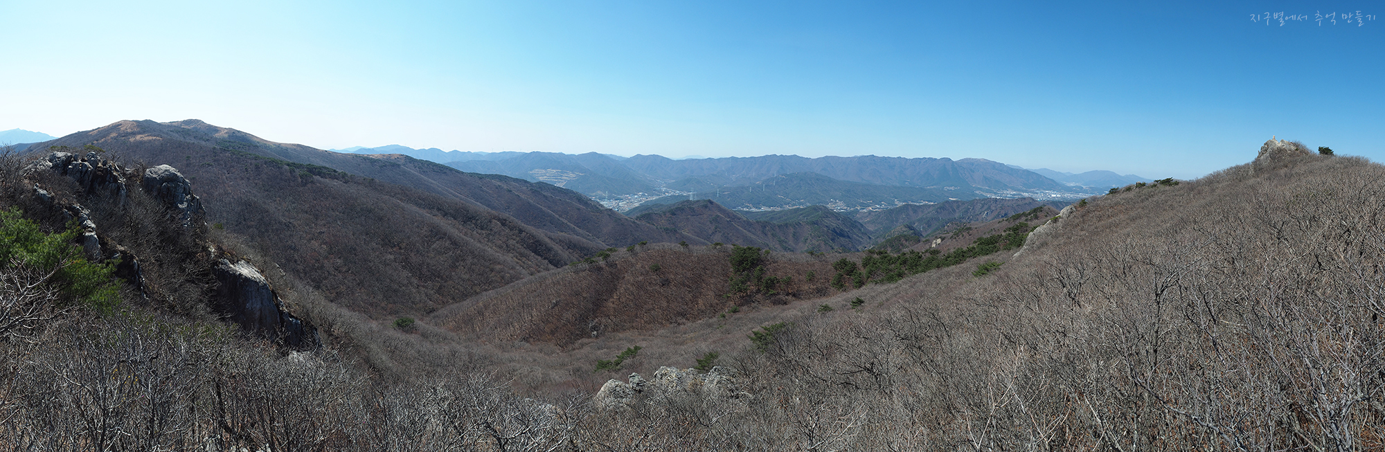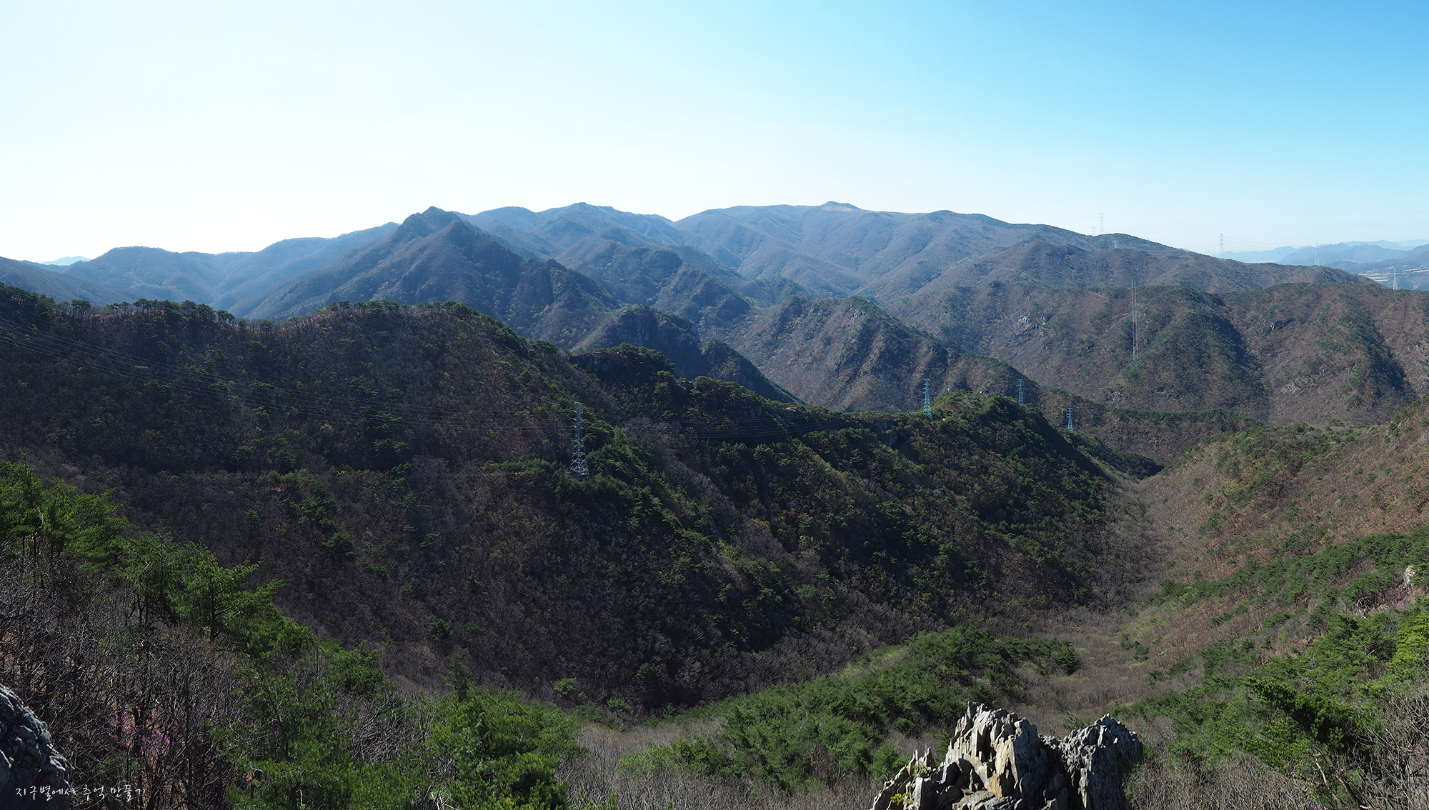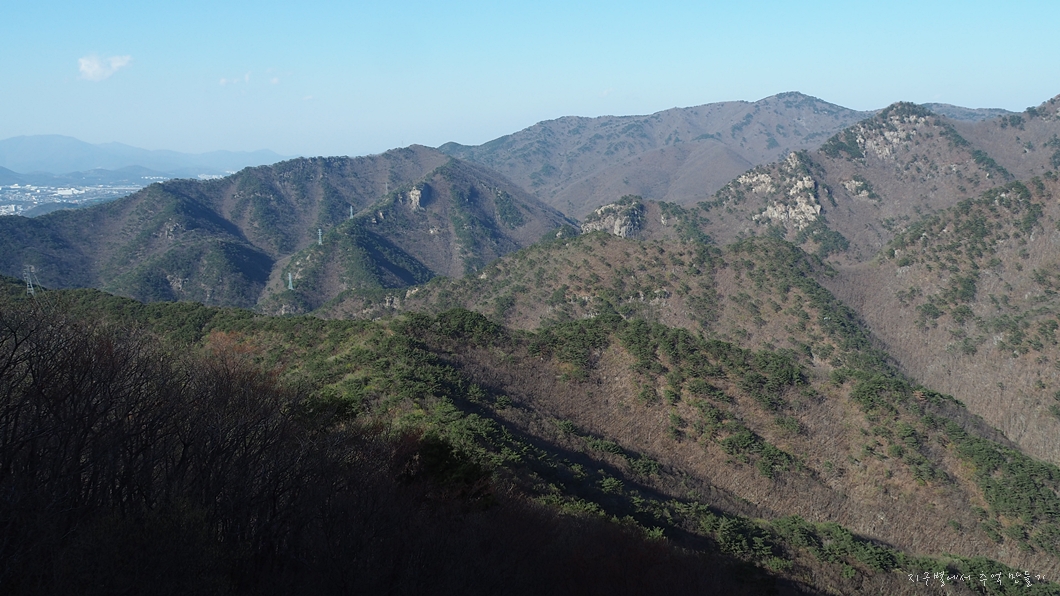 이들은 산맥처럼 서쪽을 덮고 있는 영축과 신불 능선이다.