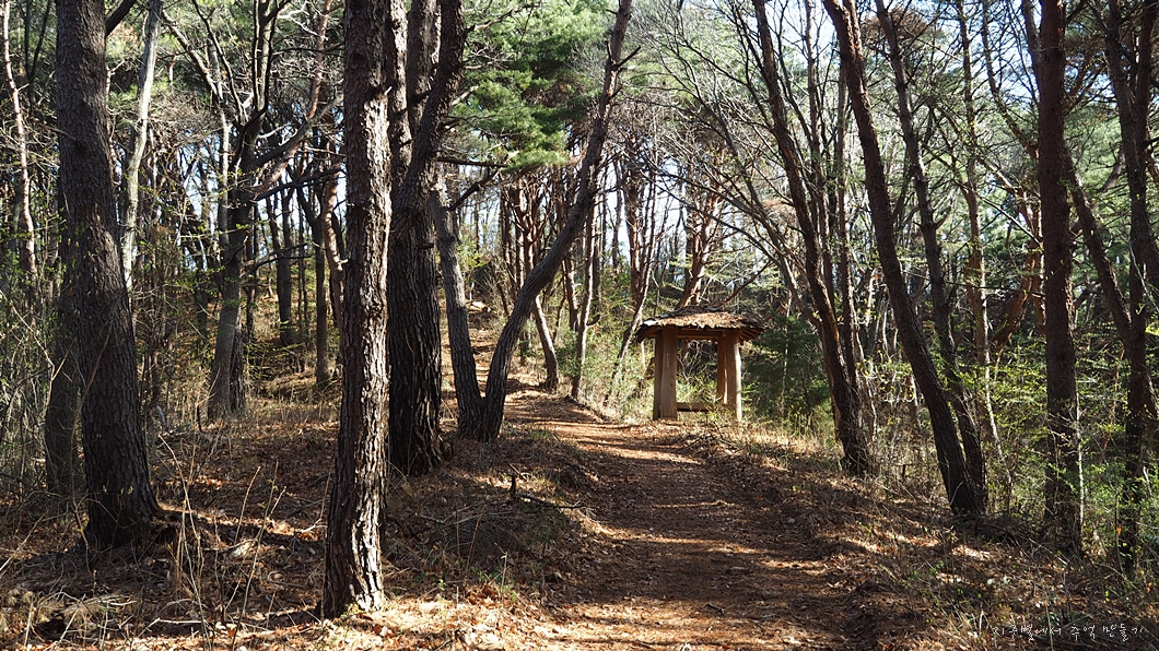 가끔 산길 중간에 숲길을 만나면 숲길을 따라 걸을 수 있는 곳도 있고 숲길을 떠나야 하는 곳도 있으니 테이프나 안내판을 이용하시면 될 것 같아요. 방향을 잡으십시오.