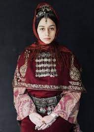 아람 여성 전통 빨간 드레스